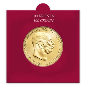 Although the coin’s design was first struck in 1872, the year engraved on its reverse is recognition that the economic constraints of the First World War brought to an end, at least temporarily, the minting of gold coins in 1915. That year was also one before the death of Emperor Franz Joseph, who ruled the Austro-Hungarian Empire for 68 years, one of the longest reigns for a monarch in modern history. His profile adorns the coin’s splendid obverse.