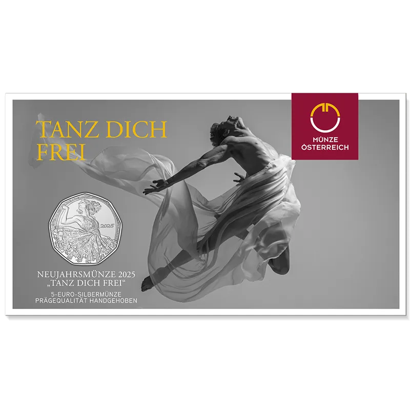 Dance Away makes the start of the new year an inspiring experience filled with lightness and joy. Our New Year Coin 2025 symbolises the freedom to release oneself from the burdens of the past year and to step confidently into the new one with vitality and optimism. Beautifully crafted, it combines Vienna’s rich dance tradition with the positive symbolism of new beginnings.