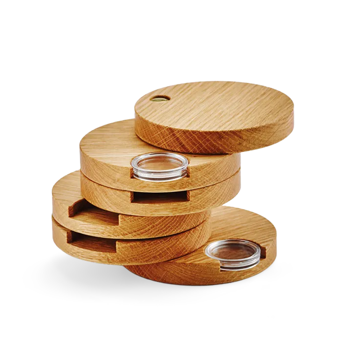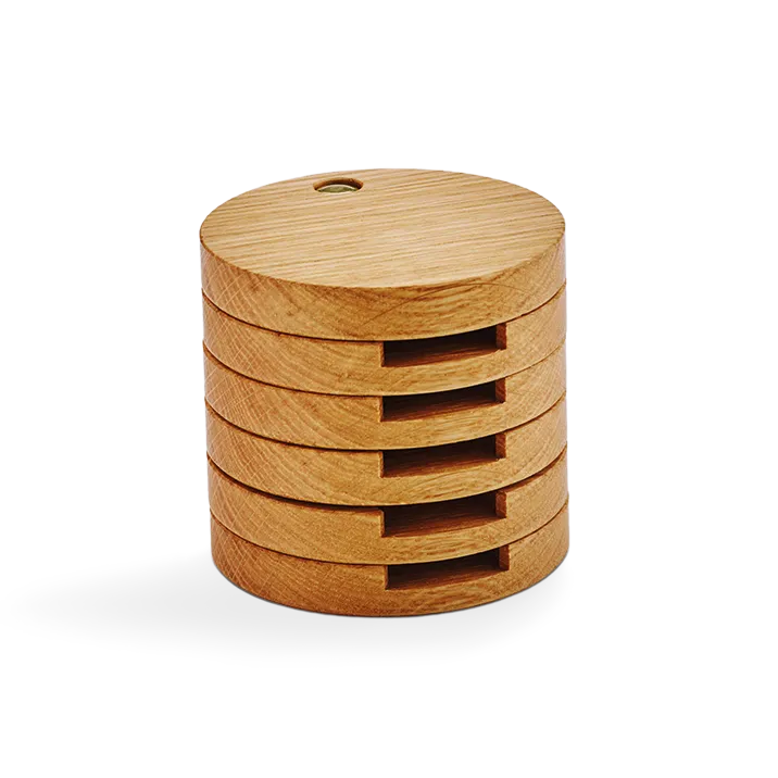 Made of solid oak from Austria this ingenious collector ‘tower’ comes in a dark-red protective box.