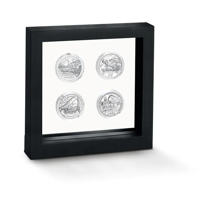 This beautiful frame allows you to display your coins in a perfect way. It makes coins appear to be floating inside its transparent silicon membranes and lets you look at both sides of your coins at all times. The frame's magnetic catch makes it easy to lock, while its flexibility means that it fits coins of any shape and holds them firmly in place.
