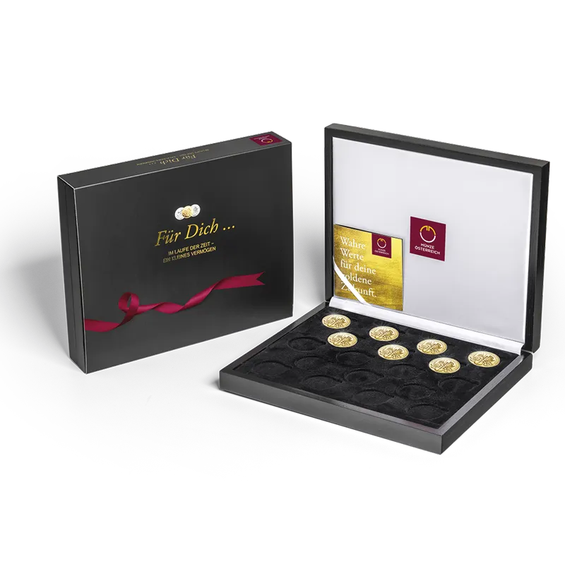Whether you purchase them at regular intervals or do so in a spontaneous manner over the years to come, building a portfolio of Vienna Philharmonics is the perfect way to help your child make his or her dreams come true. And our specially designed collector case is the perfect place to keep their coins. It is no coincidence that the collector case has room for 18 of them, since it is at 18 that we come of age.