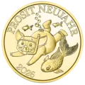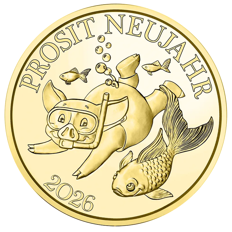Equipped with diving goggles and snorkel, our lucky little pig Kurti features on the Lucky Token 2026 on an underwater tour with a koi carp. The scales of the Japanese carp shimmer as preciously as coins. As it is able to travel long distances upstream, the koi is recognised as having qualities such as strength, endurance and determination – qualities you can pass on to those you give this lucky charm.