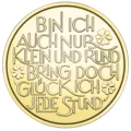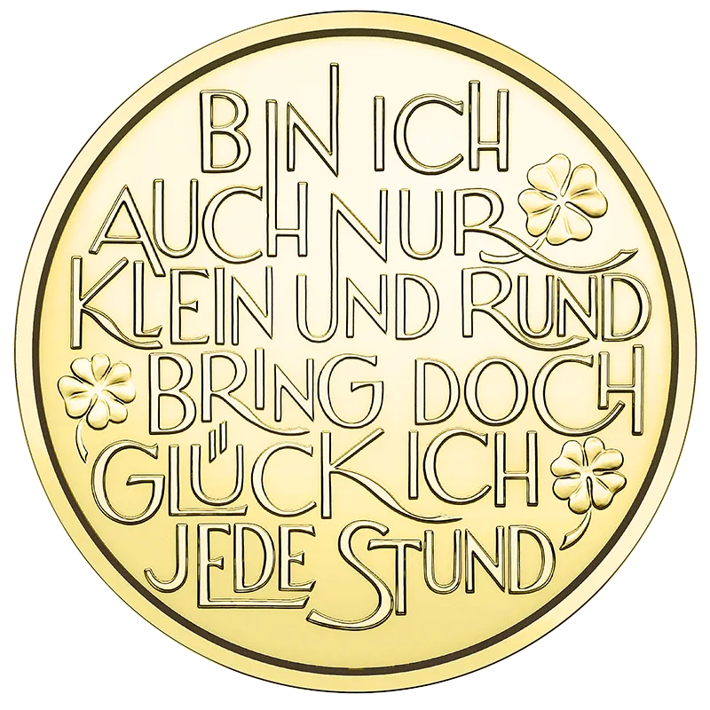 The following inscription appears on the back of the Lucky Token: “Small and round I may be yet every hour I bring luck to thee”.