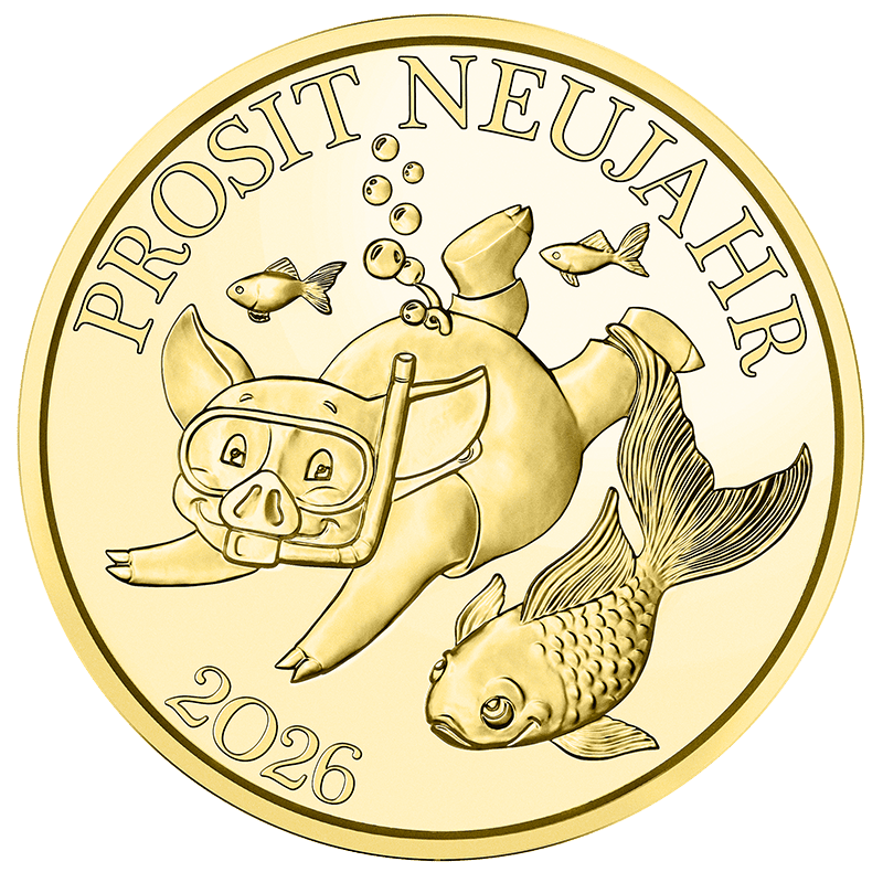 Equipped with diving goggles and snorkel, our lucky little pig Kurti features on the Lucky Token 2026 on an underwater tour with a koi carp. The scales of the Japanese carp shimmer as preciously as coins. As it is able to travel long distances upstream, the koi is recognised as having qualities such as strength, endurance and determination – qualities you can pass on to those you give this lucky charm.