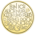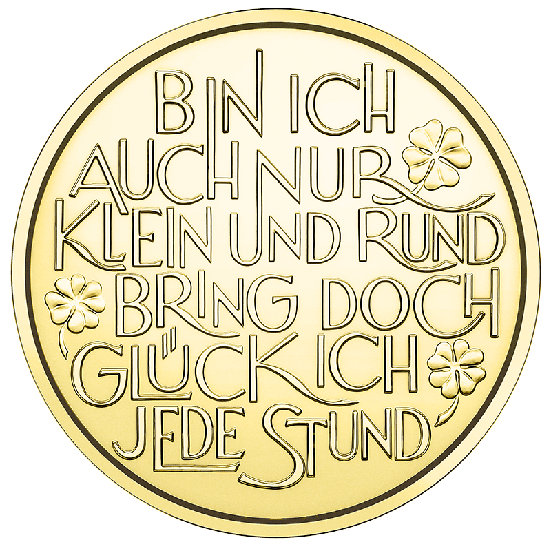 The following inscription appears on the back of the Lucky Token: “Small and round I may be yet every hour I bring luck to thee”.