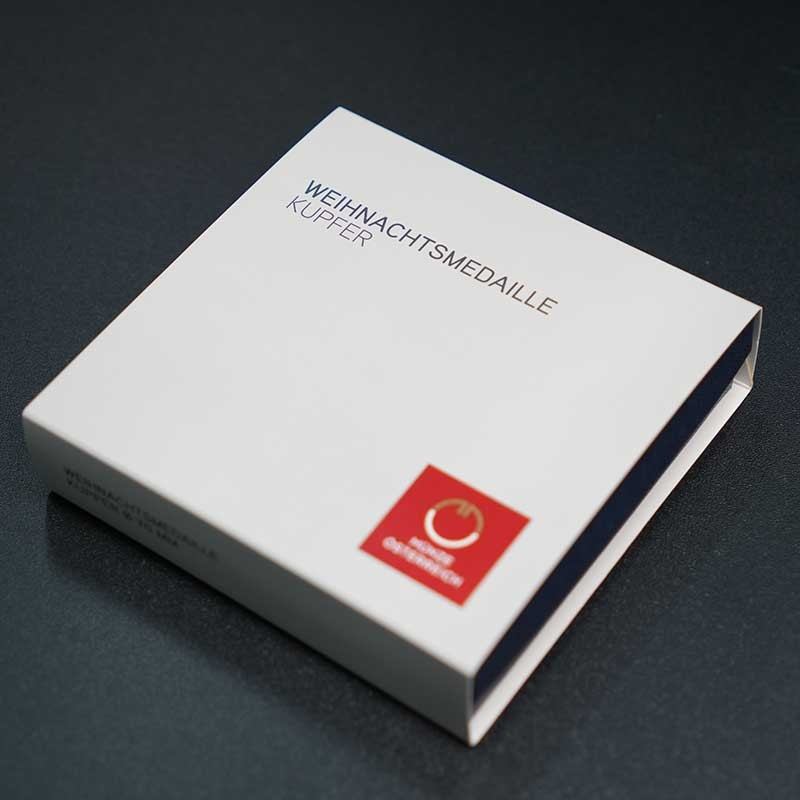 The church of St. Nikolas was destroyed by flooding in the early 20th century but in its place stands the Silent Night Memorial Chapel, built with donations over a 12-year period and finished in 1937. Today people from all over the world visit the tiny chapel despiced on the reverse of this divine little medal in an idyllic inter landscape in which a shooting star leaves the words "Merry Christmas" in its trails.