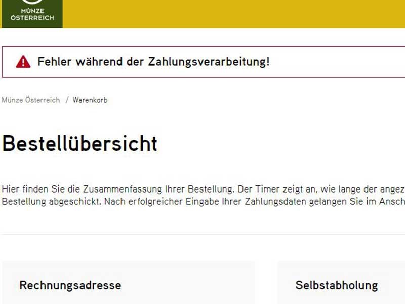 Wenn diese Fehlermeldung erscheint, wurde kein Auftrag gebucht, der Online-Bezahlvorgang war nicht erfolgreich.