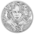 De waardezijde van de goudsbloemmunt toont een jonge vrouw die met gesloten ogen van de geur van een goudsbloem geniet. Haar lange haar is versierd met andere bloemen. Vlinders fladderen rond het meisje.
