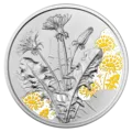 Voor de munt zijn de afdrukken van een echte paardenbloem gebruikt, zodat de plant tot in het kleinste detail op zijn echte model lijkt.