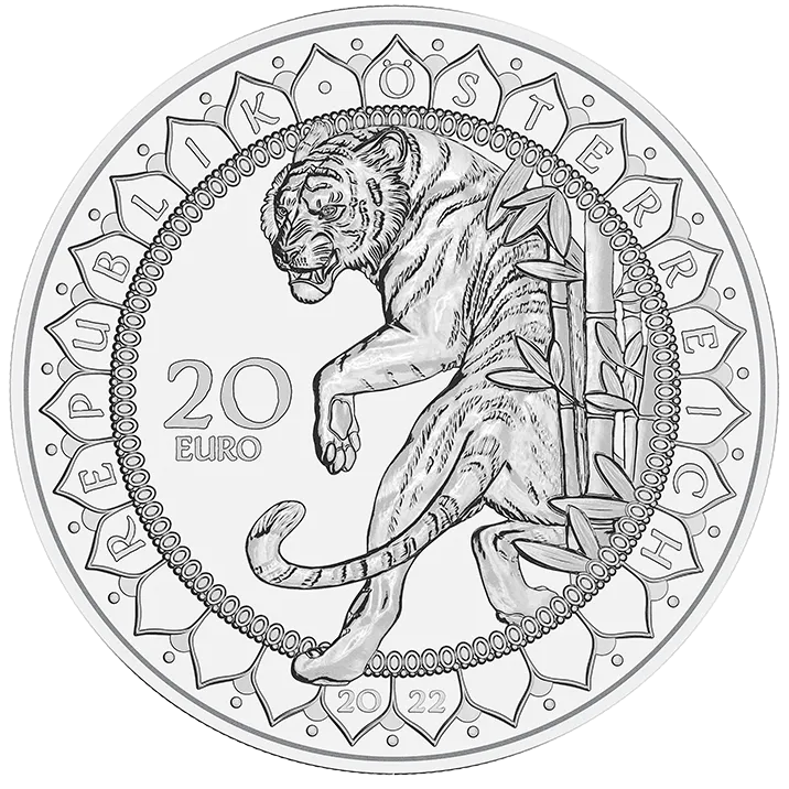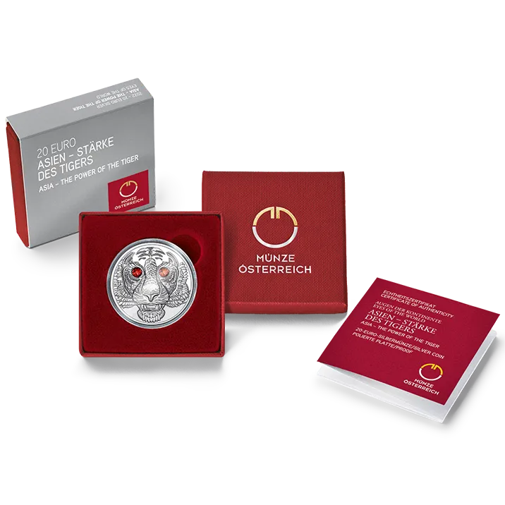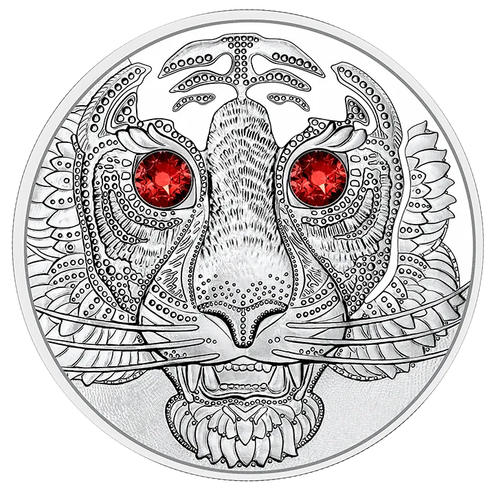 De tijgermunt, de derde zilveren munt in de serie "Eyes of the Continents", is zowel een munt als een sieraad.