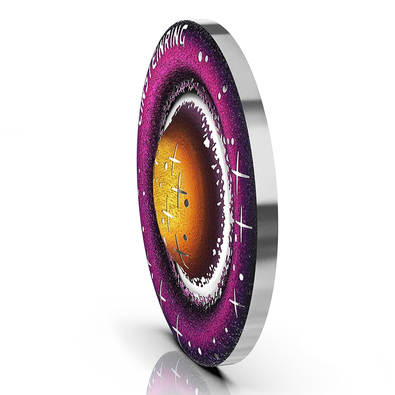 De andere zijde volgt de basisvorm van de waardezijde en is bedrukt met een kleurrijke interpretatie van Einsteins ring.