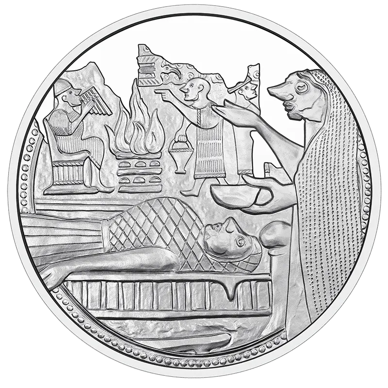 "Mining" en "Trade" worden gevolgd door "Rite". Met de derde zilveren munt in de driedelige serie "Het witte goud van het Salzkammergut" bereikt de weg van het zout zijn spirituele hoogtepunt.