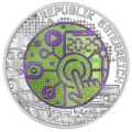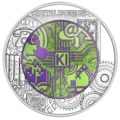 De zilveren niobium munt heeft twee kleuren: groen en violet. De kleuren worden niet gecreëerd door verf aan te brengen, maar door de precieze breking van licht. Een wijsvinger tikt op een smartphone in het niobium midden van de voorkant van de munt. Pictogrammen voor "Play", "Camera" en "Muziek" en een digitale klok laten de multifunctionaliteit zien. De analoge tegenhangers zijn afgebeeld in de zilveren rand. Op de achterkant van de zilveren ring staan ook analoge objecten zoals een brief, een telefoonwijzer of letters voor boekdruk. Hun digitale tegenhangers zijn te vinden in het groenpaarse midden: een wolk met een @-teken, een belicoon, een boek dat uit pixels bestaat en een industriële robot. In het midden staan de letters "AI" in een microchip die alles met elkaar verbindt.