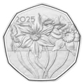 Op de munt staan vier narcissen afgebeeld. Ze staan voor de drie soorten die in Oostenrijk voorkomen: