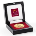 Goed opgeborgen voor de toekomst: de bijpassende kist voor je gouden vierdubbele dukaat. Perfect om je schat in te bewaren of om cadeau te geven.