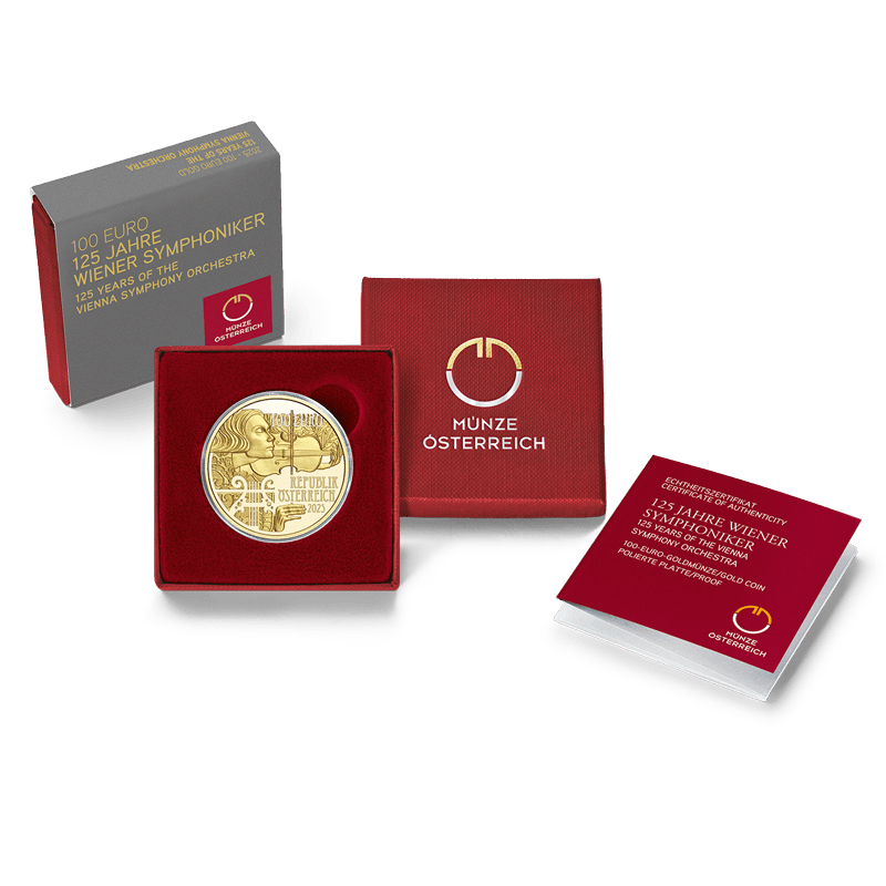 Mit der Gründung des Wiener Concertvereins im Jahr 1900 begann die beeindruckende Geschichte eines Orchesters, das Wiens Klangkultur nachhaltig prägen sollte. Die Vision: symphonische Meisterwerke in höchster Qualität – für alle zugänglich. Am 30. Oktober 1900 debütierten die Wiener Symphoniker unter Ferdinand Löwe im Großen Saal des Wiener Musikvereins – inspiriert vom Geist der Wiener Moderne. Seither verbinden sie auf einzigartige Weise Tradition und Aufbruch, Vergangenheit und Zukunft. Sie waren das erste Orchester Wiens, das alle Beethoven-Symphonien in einem Zyklus präsentierte und sie schrieben Musikgeschichte mit Uraufführungen von Werken Bruckners, Schönbergs und Ravels. Große Dirigenten wie Karajan, Sawallisch und Prêtre formten ihren unverwechselbaren Klang. Als kulturelle Brücke zu den Menschen spielten sie in Arbeiterkonzerten – und bis heute in Wiens Grätzeln. Die 100-Euro-Goldmünze zum 125. Jubiläum würdigt dieses musikalische Erbe – ein „goldener Klangkörper“ für ein Jahrhundert Wiener Musikgeschichte.