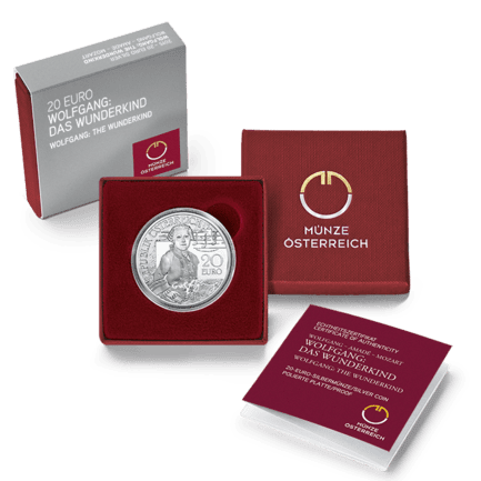 Die erste Münze der dreiteiligen Mozart-Serie widmet sich Wolferls Kindheit, die am 27. Januar 1756 in Salzburg begann, also vor mehr als zweieinhalb Jahrhunderten. Schon bald wurde offenbar, dass ein Wunderkind in die Welt gekommen war, eines, das ganz in der Welt der Musik lebte; und bis auf den heutigen Tag lebt die Welt der Musik von ihm. – Ein sehr besonderes Kind, eine sehr besondere Münze.