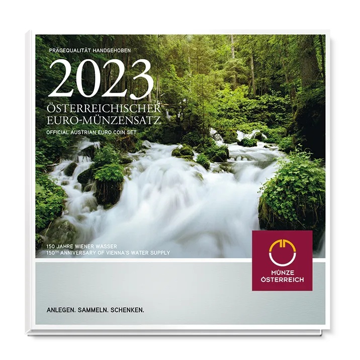 Das Cover des Euro-Münzensatzes 2023 weist auf ein freudiges Jubiläum hin: Vor 150 Jahren wurde die I. Wiener Hochquellenleitung in Betrieb genommen. Die feierliche Eröffnung fand am 24. Oktober 1873 vor dem Hochstrahlbrunnen am Schwarzenbergplatz durch Kaiser Franz Joseph I. und Bürgermeister Cajetan Felder statt.